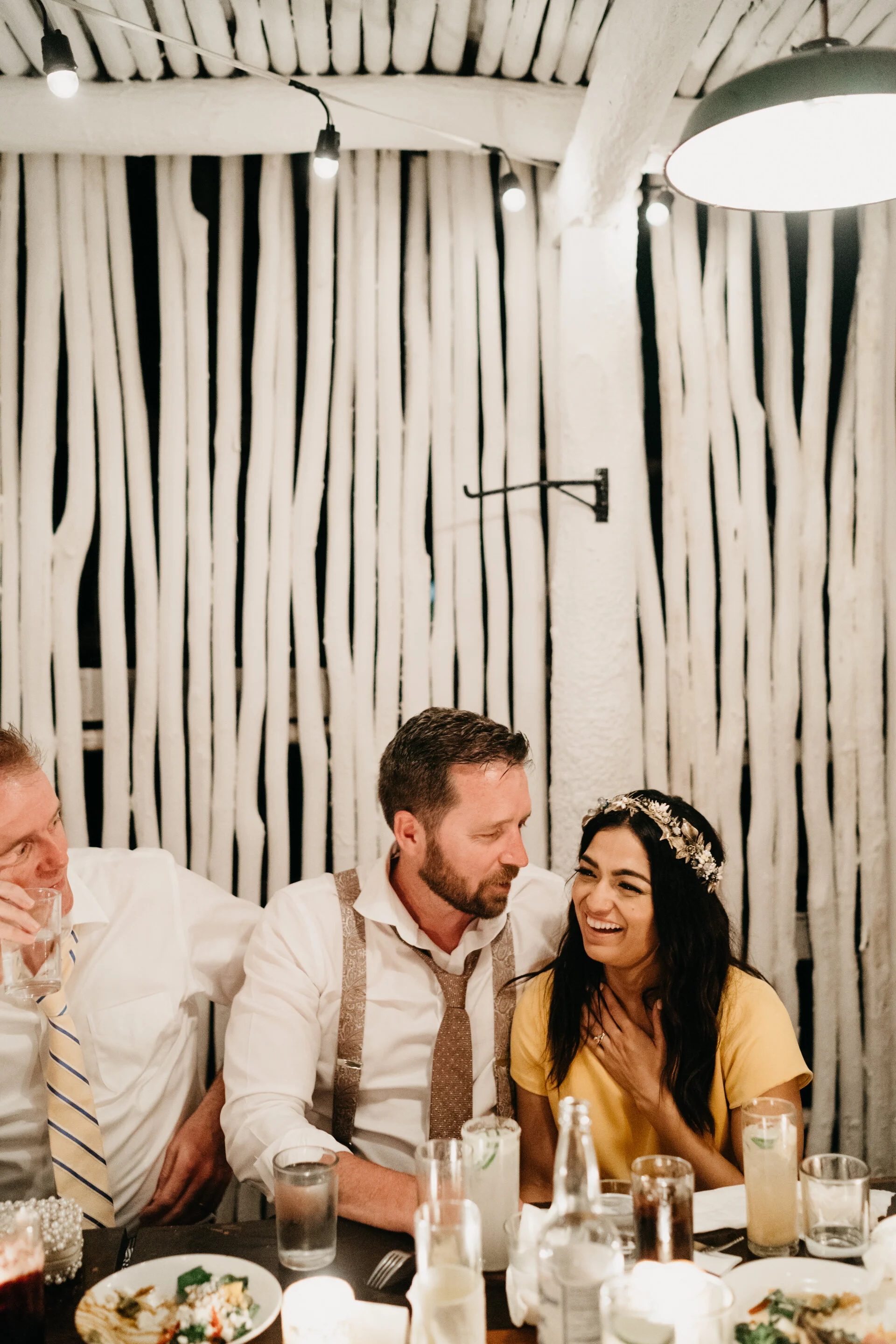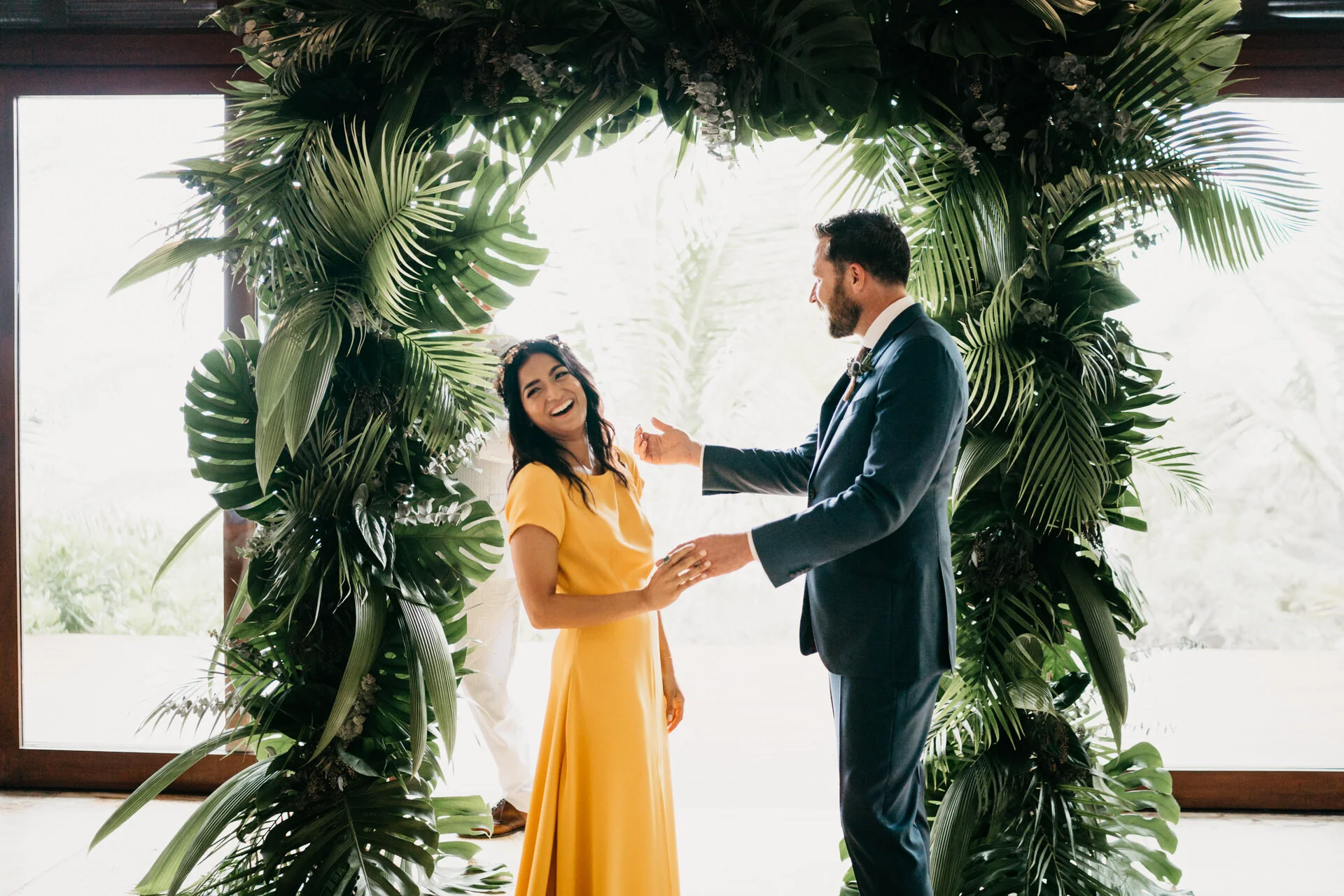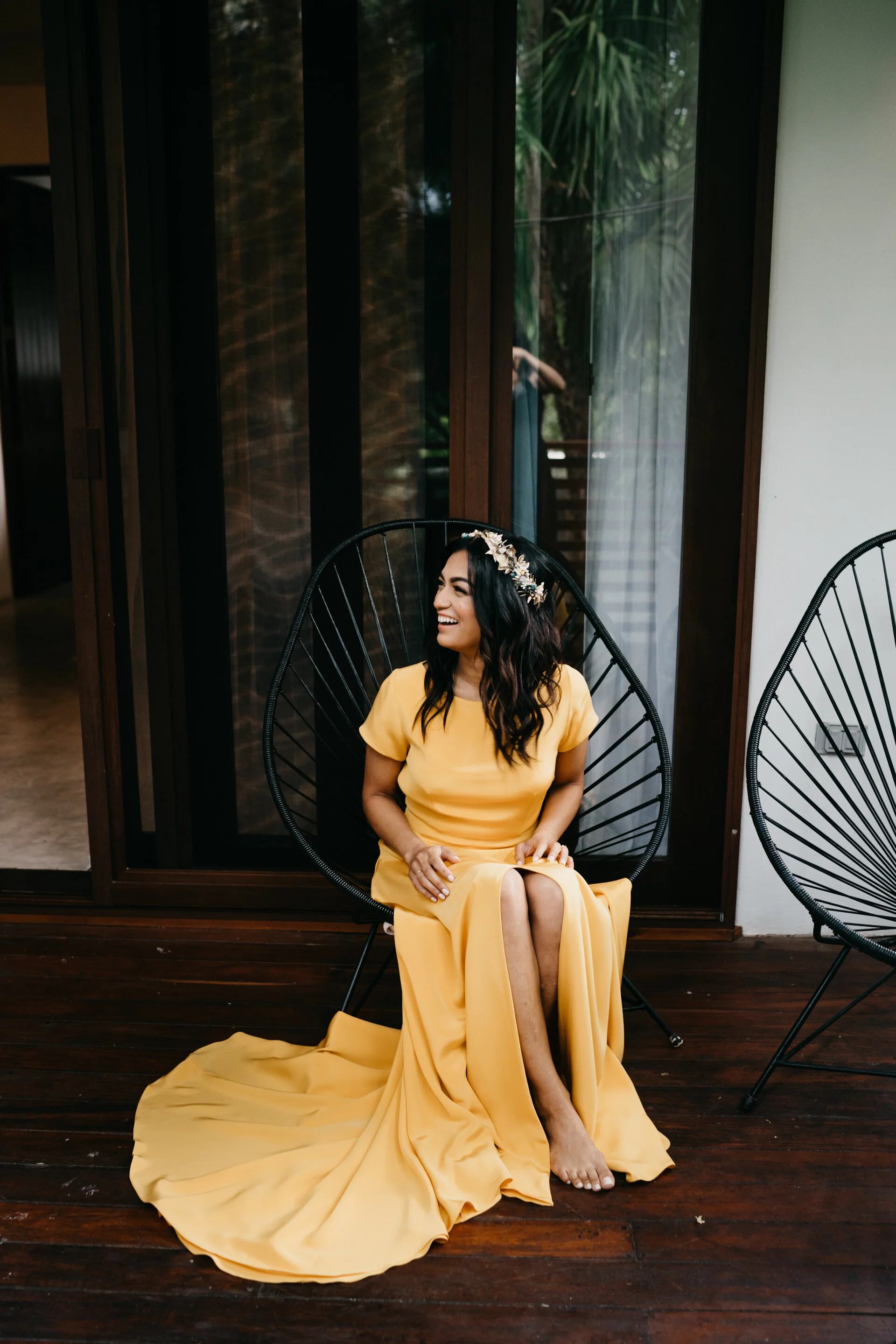 We have to talk about Iqra and Dave’s epic wedding in Tulum if you want to see a nontraditional wedding! This chill-fun couple traded tradition for a ceremony in a beach-front yoga studio in the iconic Sanará Hotel in Tulum! There are few brides who can pull off wearing the yellow Sarah Seven wedding dress and definitely Iqra is one of them! Situated between the tropical jungle and turquoise waters, this eco-boutique hotel was the perfect spot to celebrate their love. This fun-loving couple traded a traditional wedding for a ceremony in a beach-front yoga studio at Sanara.