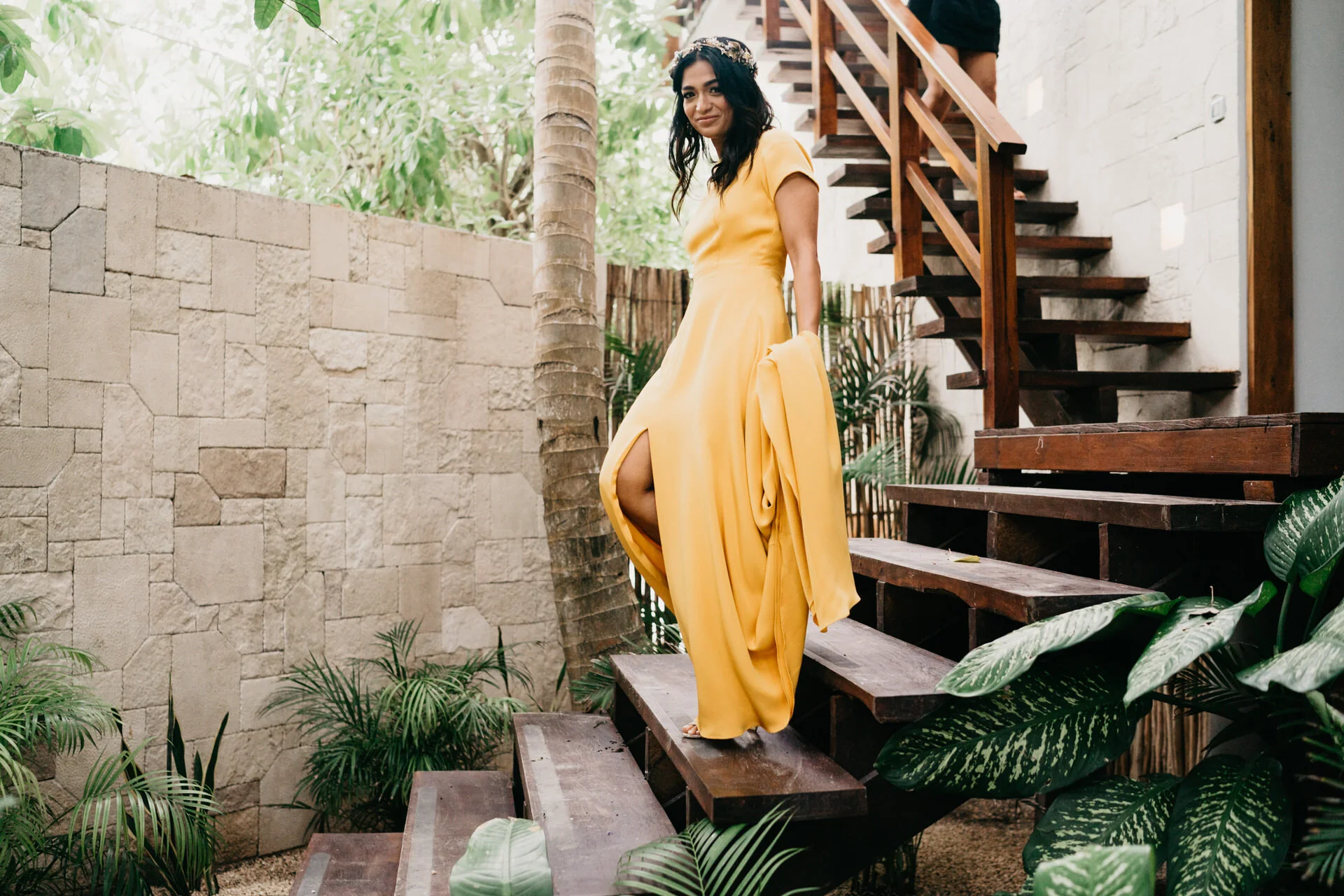 This unique wedding was planned by Diana Romo Weddings, one of the best wedding planners in the Rivera Maya. Iqra looked stunning in the marigold-colored dress. She dressed up with emerald accessories and a custom hairpiece created by Suma Cruz. The combination of jewel-tone color palette paired with the tropical views couldn’t have worked better! One of the key aspects of this wedding was the experience the guests got to enjoy in the lush jungle side of Tulum. Friends and family traveled far and wide to be at their wedding. Iqra wanted the guests to feel involved with the wedding. So she decided to have their wedding ring passed around. And then each guest had the opportunity to say a blessing. Definitely this moment was such a unique element in the ceremony, it made truly feel special.